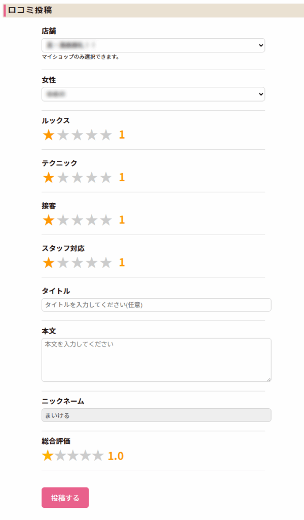 WEBとぴでは、ユーザーが実際に利用した店舗・女の子について口コミを投稿できます。
