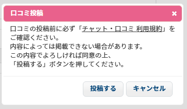 投稿フォームで「投稿する」を押すと、確認用のダイアログが表示されます。