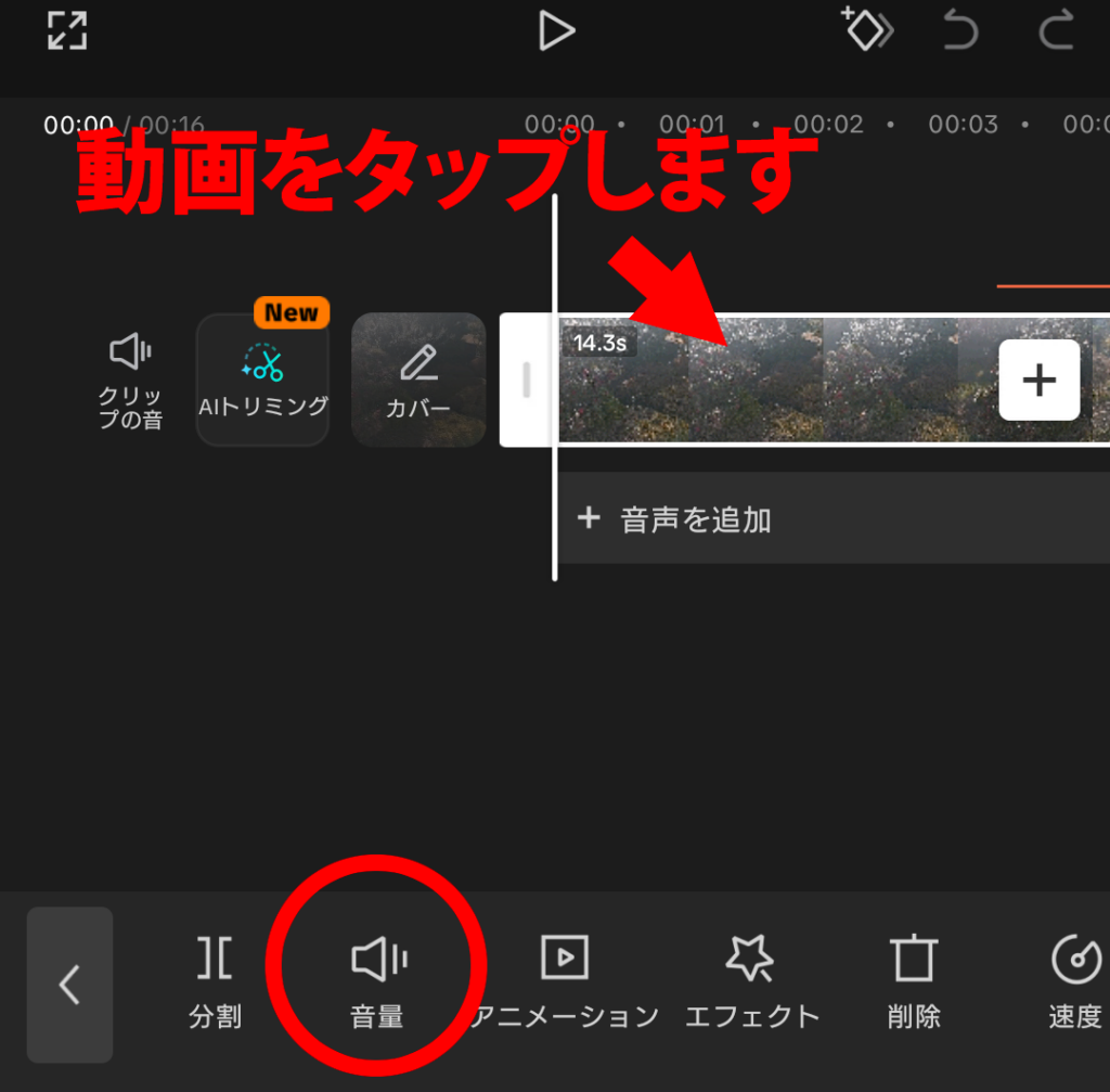 - タイムラインの動画をタップします