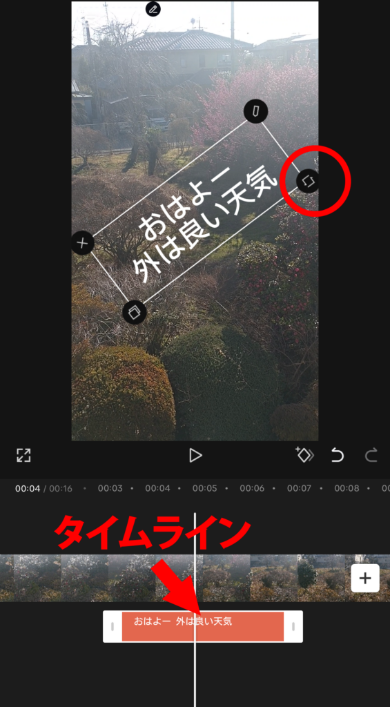 ・文字を表示させたいタイミングはタイムラインで調整します。