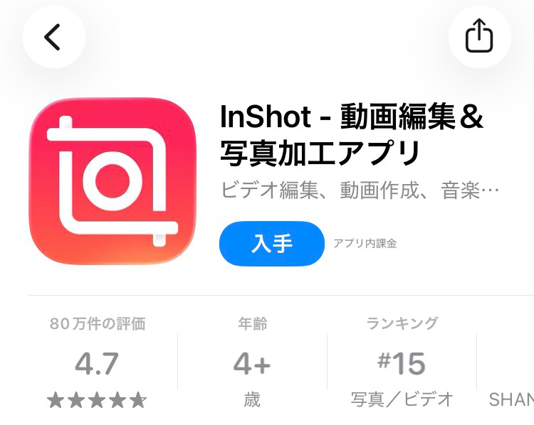 ただし、InShotには一部有料機能が含まれており、選択したフォント・スタイル・スタンプ・音源などによっては、有料機能の案内が表示される場合があります。