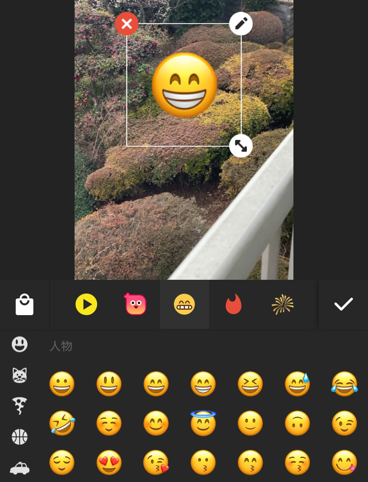 見せたくない部分(背景の文字、鏡への映り込みなど)がある場合は、スタンプで隠すことができます。