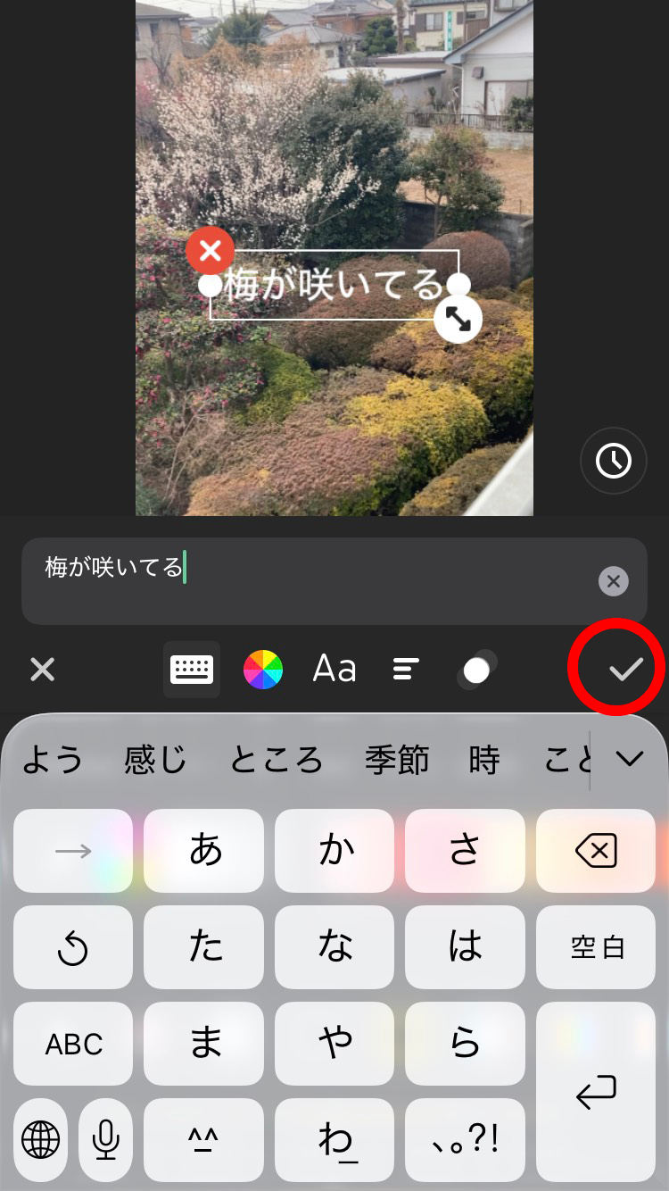 見せたくない部分(背景の文字、鏡への映り込みなど)がある場合は、スタンプで隠すことができます。